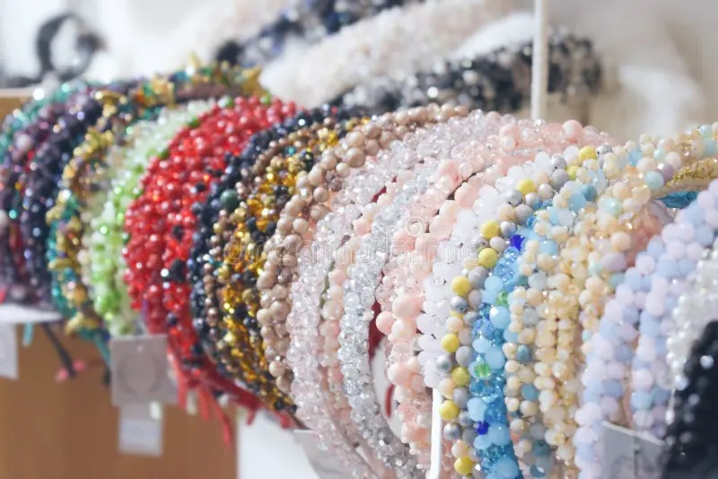 Accesorios como collares, pulseras, tobilleras y aros, elaborados con materiales naturales utilizando materiales como como piedras naturales, hilos encerados, metales y textiles.